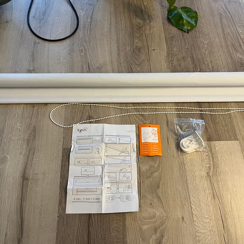 Pimentävä rullakaihdin / pimennysverho / verho beigenvärisellä kuosilla ja hapsuilla alareunassa. Koko 2,6 m eli 2600 mm. Kiinnikkeestä kiinnikkeeseen pari senttiä enemmän. Peitti itselläni isot olohuoneen ikkunat mutta muuton yhteydessä jäi tarpeettomaksi. Mukaan metalliset kiinnikkeet sekä 4 x ruuvi ja tulppa, joilla ollut itselläni seinässä ongelmitta.