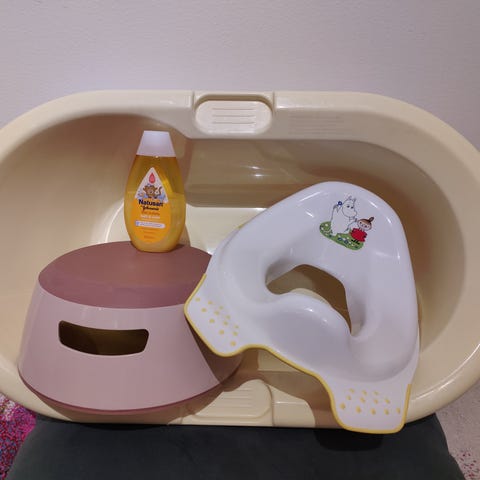 Ikea Lättsam kylpyamme, Muumi potta, minnie koroke ja WC supistaja setti