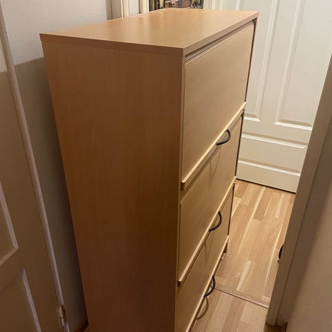 Myydään 3 kpl valkoisia, lukittavia rulo-ovellisia kaappeja. Olleet käytössä tv-tasona eli soveltuvat siihenkin, mutta mahdollista käyttää monenlaiseen säilytykseen ja myös pinota päällekkäin. Siistit ja hyväkuntoiset, yhdessä ovessa pari pientä kolhua, kts. kuva.