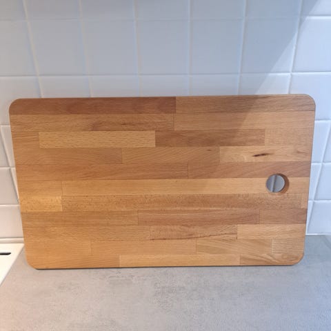 Paketti on käyttämätön. Leikkuulauta edelleen muoveissa.