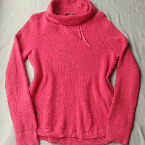 Myydään kauniin oranssi/terrakotan sävyinen pooloneule. Materiaali on hengittävää 100% puuvillaa, jossa on joustava ribbi-neulos. Klassinen malli, joka sopii loistavasti syksyyn/kevääseen ja kerrospukeutumiseen.