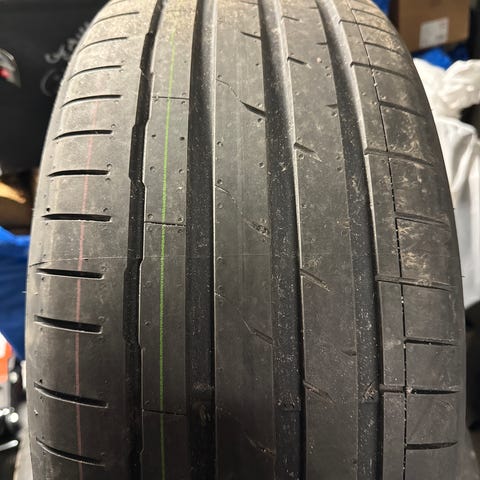Tasaisesti kuluneet laadukkaat renkaat. Pintaa 5.8mm, kun uutena näissä 7mm.