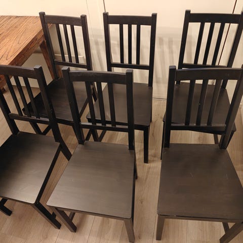 Myydään erittäin siistit, uuden veroiset ja tyylikkäät ruokapöydän tuolit. Tuolin väri on kokonaan musta. Istuimessa on musta keinonahka pehmuste joka on virheettömässä kunnossa. Ostin tuolit syyskuussa 2025, mutta jäänyt vähälle käytölle ja nyt myyn ylimääräisenä seuraavalle.