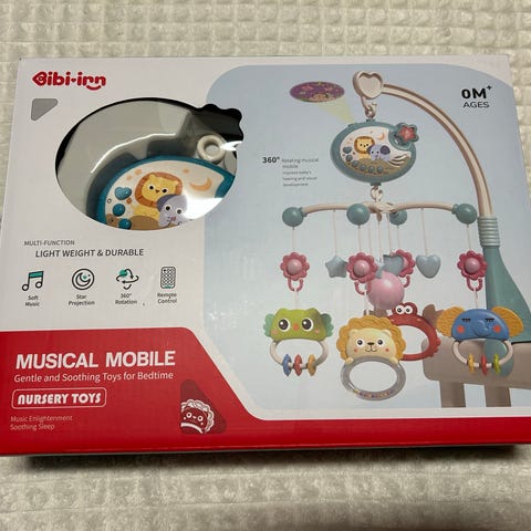 Hyvässä kunnossa oleva musiikki mobile vauvalle. Patterit sisältyy hintaan.