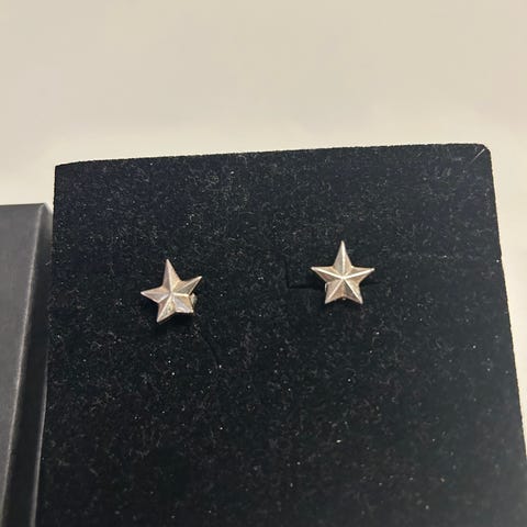 Efva Attlingin Catch a Falling Star tähtikorvakorut hopeaa. Käyttämättöminä omassa rasiassaan hieman patinoituneet, voidaan tarvittaessa kiillottaa samaan hintaan.