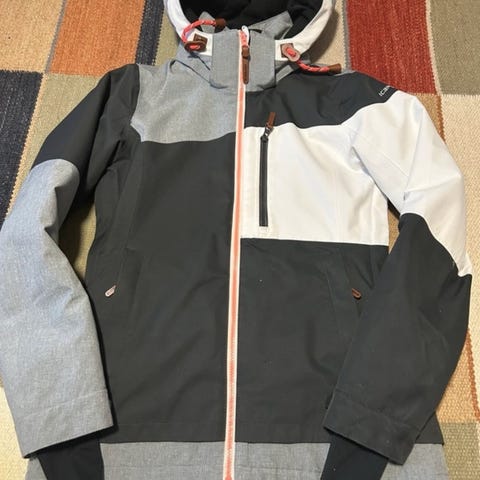 Icepeak naisten takki, koko 40, väriltään punainen ja valkoinen. Koko vastaa 38/40. Takissa on vetoketjutaskut ja irrotettava huppu. Tuuletusaukot kainaloissa. Alareunassa ja hihoissa kiristys.