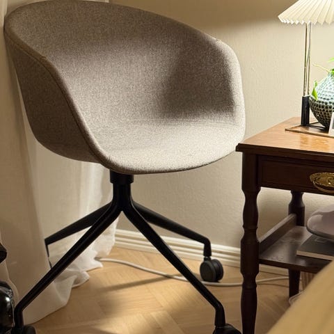 Kiinteä istuinkorkeus ja kevyt jalusta tekevät tuolista visuaalisesti siromman kuin perinteiset toimistotuolit. Omassa käytössä sopinut erittäin hyvin etätyöpisteen tuoliksi.