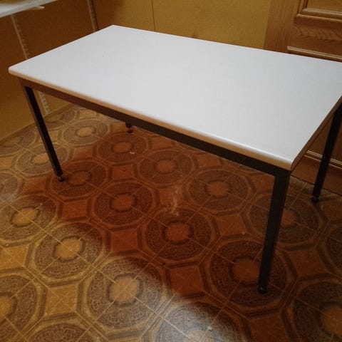 Siistissä kunnossa oleva metallinen pöytä.