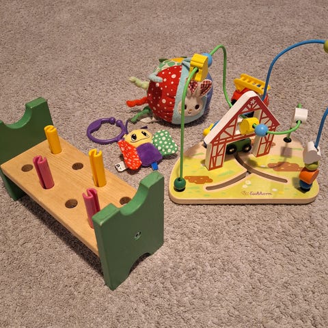 Perässä vedettäessä mittarimato pyörittää selässään olevia "kukkia", mulavaa puuhaa taaperolle! Käytetty ja kulumaa on, mutta systeemi täysin ehjä. Kuvassa näkyy kulumat. Pituus noin 26 cm. +1v.