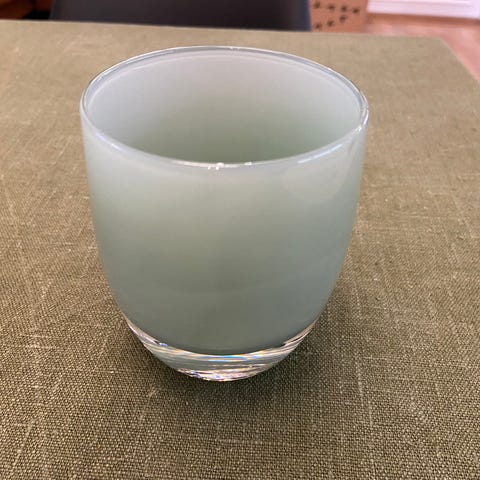 Norjalaisen Hadelandin valmistama, Finn Schjollin suunnittelema lasinen maljakko/kynttilälyhty. Kunto virheetön. Vain nouto.