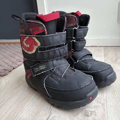 Burton Mini Grom lasten lumilautakengät koko 11-12 (28-29). Mukana pohjallinen, jonka avulla voi "säätää" kokoa yhden kokonaisen koon verran. Hyvä kunto!