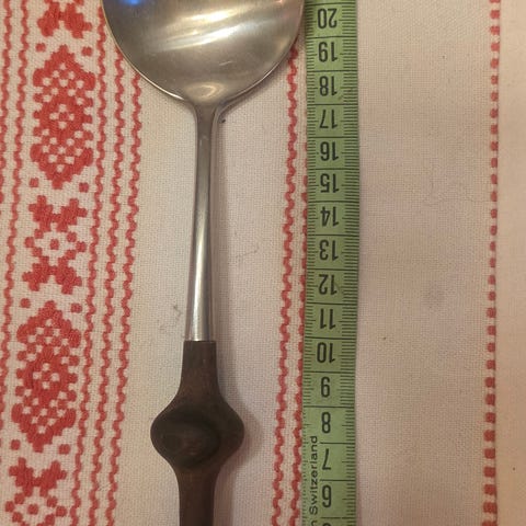 Hackmanin Lion-sarjan tarjoilulusikka. Musta muovipää.
