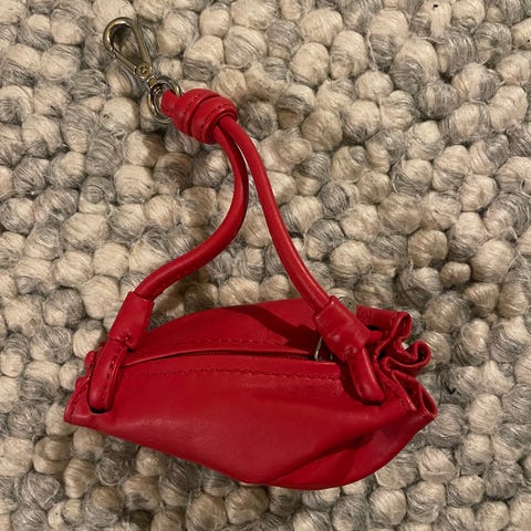 Tämä suloinen pikkulaukku on saanut inspiraationsa karkkipaperista. Laukku on valmistettu laadukkaasta nahasta ja siinä on kätevä vetoketjusuljenta. Lyhyt, kapea olkahihna ja metallinen klipsi viimeistelevät ilmeen. Laukun vuori on valmistettu kierrätetystä polyesteristä.