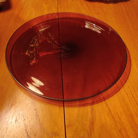 Sininen lautasosa, jalka kirkasta lasia.
