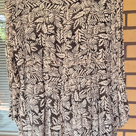Koko ehkä M tai L, kerkisin ottaa kokolapun pois. Materiaali polyesteri 54%/akryyli 36%/polyamidi 7%/elastaani 2%.