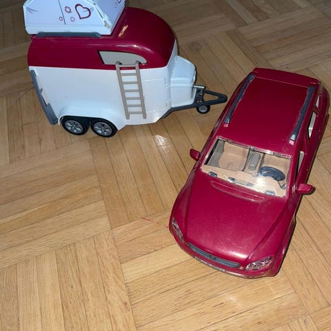 Myydään hyväkuntoinen schleich auto, traileri ja schleich kuljettaja.