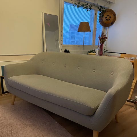 Myydään Jyskin Egense 3-istuttava sohva puisilla jaloilla. Siisti, hyvä kunto.