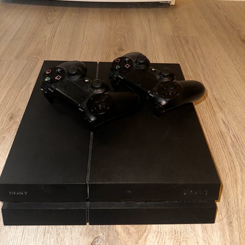 Sony Playstation 4 pelikonsoli, 2 ohjainta ja latausjohto. Hyvä kunto, ei ole puhdistettu, eli tuuletin pitää ääntä.