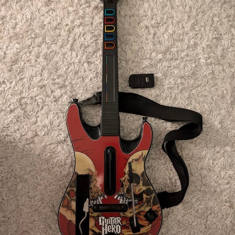 Guitar Hero Metallica -pelisarjaan kuuluva kitara ja peli Nintendo Wii -konsolille. Kitara on punamusta väriltään ja sisältää tarvittavat ohjaimet ja pelilevyn.