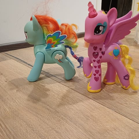 Molemmat ponit laulavat nappia painamalla, ja siivekäs poni liikuttaa myös siipiään kun takajalat painaa yhteen.