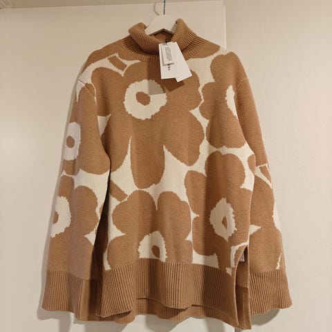 Myydään iki-ihana Marimekon XL - kokoinen neule. Vain käyttöönottopesu tehty. Unisex-malli. Tästä lisätietoja ja samoin kuva napattu täältä; https://www.boozt.com/fi/fi/marimekko/puuteri-unikko_32873054/230183693