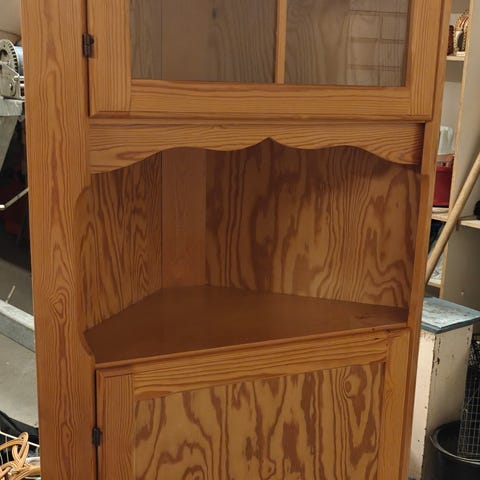 Valkoinen siisti kulmakaappi. Yhden sivun syvyys 41cm korkeus 177cm korkeimmasta kohdasta.
