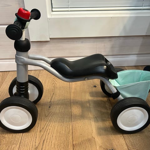 Raider potkupyörä valkoisella rungolla ja vaalealla satulalla. Sopii lapsille potkupyöräilyyn tasapainon harjoitteluun.