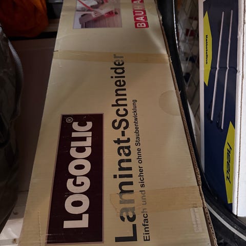 Meiltä jäi tarpeettomaksi mm. talon lattioiden asennuksesta K-raudasta hankittu LAMINAATTILEIKKURI