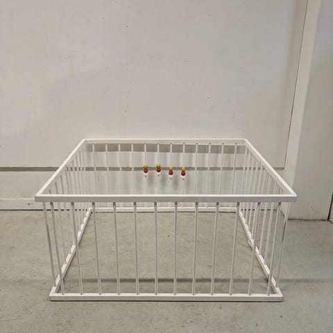 Koivupuinen lakattu leikkikehä, Kaksholmens sängfabrik AB. Koko n. 120x120 cm. Siisti, ehjä ja tukeva. Helppo purkaa/koota, menee neljään osaan.