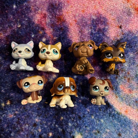 Kolme hyväkuntoista ja aitoa LPS-hahmoa.