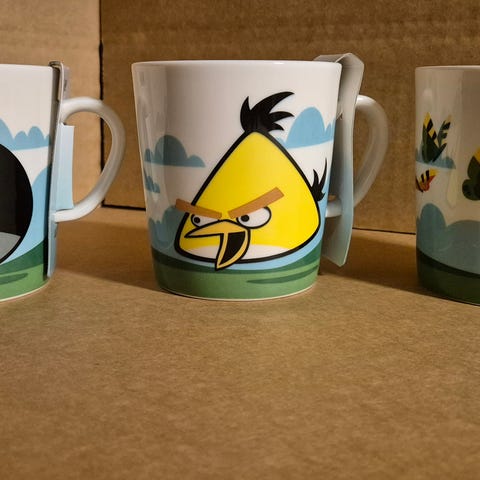 Myynnissä tarjouskaupalla Arabia Angry Birds mukit. Täysin uudet ja käyttämättömät.