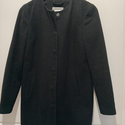 Myydään Vero Modan harmaa villakangastyyppinen takki. Edessä nepparit, solmittava vyö ja kaksi taskua. Pituus olalta helmaan n. 93 cm.