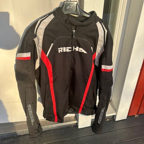 Erittäin siisti Richa musta moottoripyörätakki. Sisältää CE-hyväksytyt suojat selässä, olkapäissä ja kyynärpäissä.