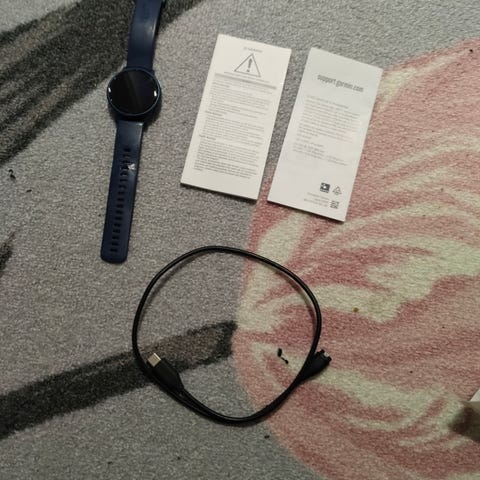 Mukana alkuperäinen pakkaus käyttöohjeineen sekä latausjohto ja takuukuitti (takuuta jäljellä vuoden 2027 marraskuuhun).
