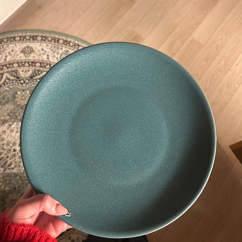 Arabia lautanen vihreä. Pienempi malli, soveltuu esim leipälautaseksi. Yhdessä lautasista on käytön jälkiä ja reunassa näkyy lohkeama. 6kpl.