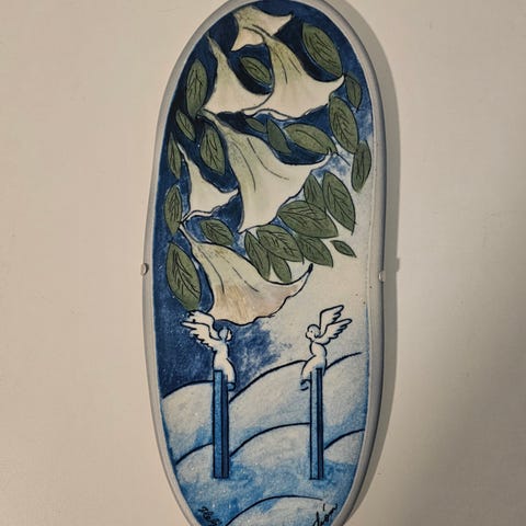 Myydään Arabia Heljä Liukko-Sundtröm koristelaatta, alla enkelipasuunan. Hyväkuntoinen.