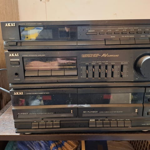 Hyväkuntoiset stereot Akai kaukosäätimella.