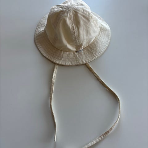 Gugguu kesähattu/hellehattu/lierihattu, koko S . Meille käytettynä tullut, meillä muutaman kerran käytetty, kun oli mielestäni vähän nafti 49 cm päähän. Meillä hajusteettomasti pesty. Pesulappuun tussilla nimikoitu. Siistissä kunnossa, en huomaa moitteita. Arka väri, joten joku jälki voi kuitenkin olla.