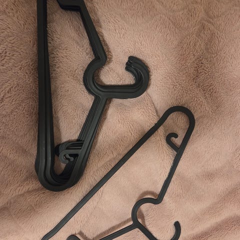 Lisäksi pakettiin mukaan Ikean 4 mustaa muovihenkaria, niiden kunto hyvä, ei niin siisti kuin valkoisten.