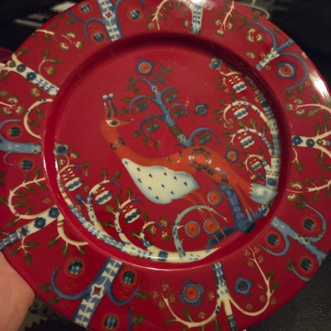 Myös pieniä lautasia 3 punaista, 1 sininen ja 1 valkoinen. Lautaset 10e/kpl.
