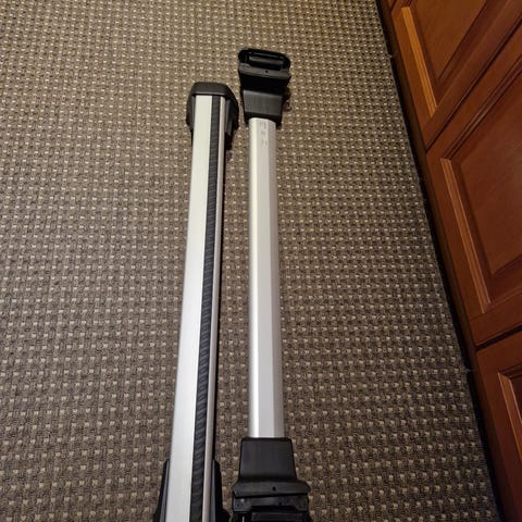Volvon omat taakkatelineet, kattotelineet, 2 kappaletta. Sopii auton katolle tavaroiden kuljettamiseen. Mukana kiinnitystarvikkeet, avaimet ja ohjeet. Aerodynaaminen muotoilu, ei vingu ja kuluta bensaa/dieseliä. Helppo kiinnittää mukana tulevalla kiristys avaimella, oikeaan momenttiin. Ollut 2014 vuoden mallissa. Ilmeisestikin sopii n. 11-17 vuosien malleihin. Ollut vain kahtena talvena vähän käytössä. Ostettu uutena.