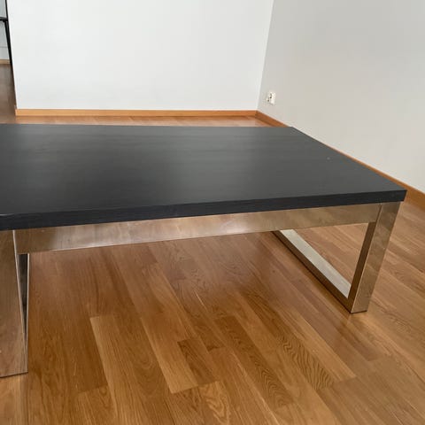 Perus sohvapöytä kalustelevyä. Pöytä on Tampereen Pohtolassa.