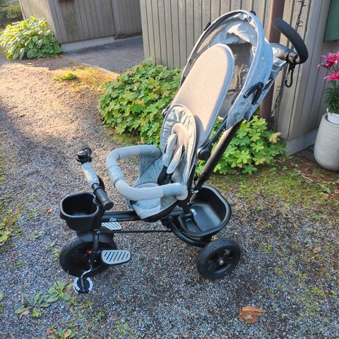 smarTrike lasten kolmipyörä, käytetty mutta hyvässä kunnossa. Pehmustettu istuin ja turvavyö, säädettävä työntöaisa, aurinkokuomu, jalkatuet + säilytyslokero takana.
