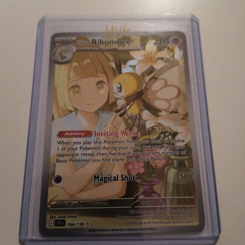 Pokémon Lillie's Determination keräilykortti. Kortti sisältää Lillie-hahmon kuvan ja on osa Pokémon-korttipeliä.