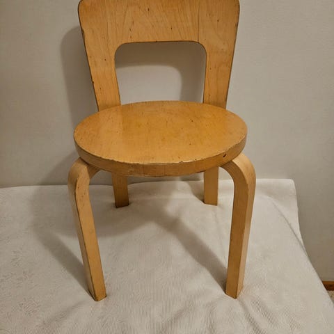 Alvar Aalto suunnitteli N65 lastentuolin vuonna 1935. Tuoli on pienennetty versio tutustu 65 tuolista. Tuolin tunnusmerkkejä ovat selkeät linjat ja yksinkertainen rakenne. Matala selkänoja on valmistettu yhdestä koivuvanerikappaleesta, joka kaartuu hieman tarjoten mukavaa tukea selälle. Pyöreä istuin ja L-jalat kuuluvat Alvar Aallon suunnittelemiin vakiokomponentteihin. Tuoli on vanhempaa tuotantoa, kunnostettu, uudelleen maalattu.