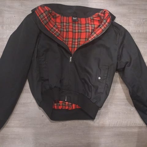 Käytetty Harrington takki, väri vähän haalentunut ja käytön jälkiä on sisävuoressa. Muuten soiva peli!