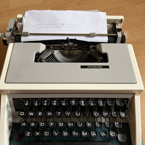 Kirjoituskone 60/70 - luvun taitteesta. Ollut minulla uudesta lähtien ja koristeena aktiivikäytön jälkeen n. 50 vuotta.