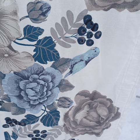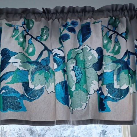 Vallilan hyväkuntoinen, uudenverinen, tehdasvalmisteinen verhokappa. Kuosi "Kuosipuu" design Eero Aarnio. Koko 250 cm*60cm.