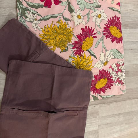 Istuintyynyt, 2 kappaletta, vaaleat. Pehmustetut istuintyynyt, joissa kiinnitysnauhat. Sopivat parveketuoleihin. Haalistuneet auringossa. Voi esim päällystää.