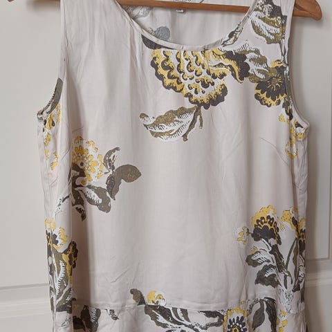 Topissa painatus on ok. Kangas hyvässä kunnossa. 100 % puuvilla.
